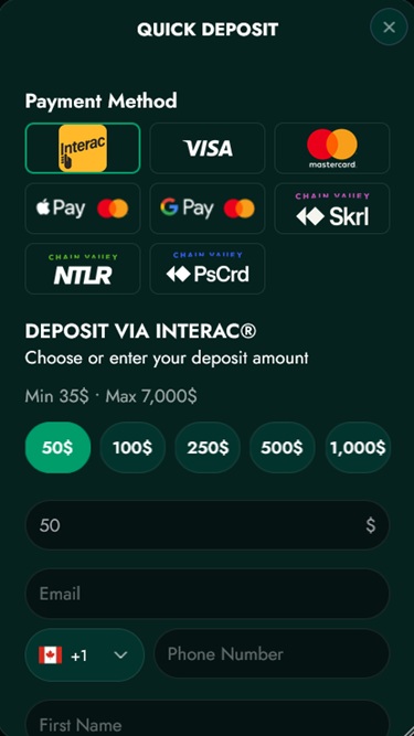 入金と出金を行うために、プレイヤーはApple Pay、銀行送金、Google Pay、Neteller、Skrill、決済カード、人気の暗号通貨オプションなど、さまざまな銀行方法を使用できます。