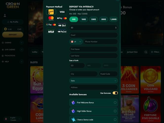 お住まいの地域では、オンラインギャンブル用の銀行サービスがご利用いただけない場合がありますので、ご希望の銀行サービスがCrowngreenアカウントへの入金に利用可能かどうか必ずご確認ください。本人確認手続きが完了すると、銀行振込の場合は最大5営業日、一部のeウォレットの場合は即時、クレジットカードの場合は最大3営業日で出金されます。
