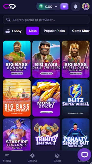 ブランド名は一般的ですが、アクセスできるプラットフォームはモダンで視覚的に魅力的です。ミニマルなデザインと心地よい紫と青の色調が、プレイヤーにとって非常に落ち着いた雰囲気を作り出しています。