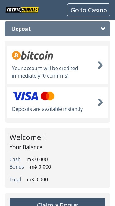 Crypto Thrills Casinoは BetSoft, Ezugi, Rival, Saucify, eBET, Fresh Deck Studios and Original Spiritを採用しており、ゲームは面倒なファイルをダウンロードすることなく、Webベースのプラットフォームからプレイできます。このサイトはモバイル対応なので、スマートフォンやタブレットでもゲームをプレイできます。