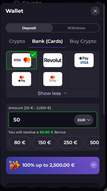 での銀行オプション CryptoLeo Casino