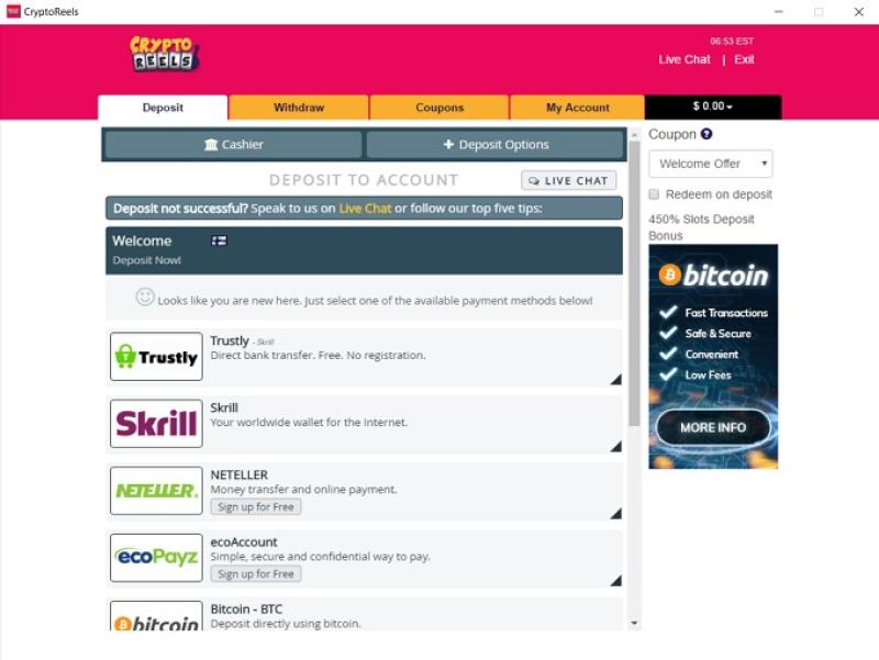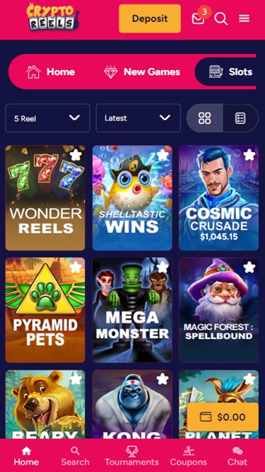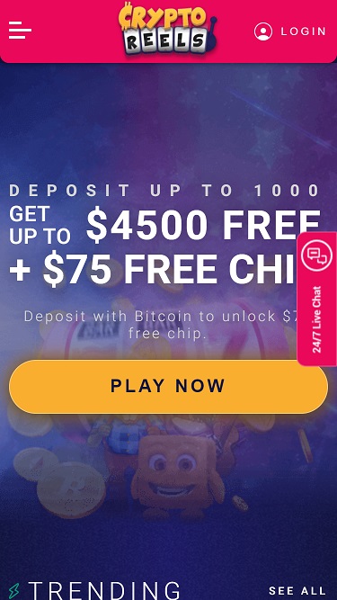 CryptoReelsは Real Time Gaming and Visionary iGamingを採用しており、カジノのゲームはインターネットベースのプラットフォームを通じて提供されています。RTGカジノの中にはダウンロード可能なソフトウェアを提供しているところもありますが、CryptoReelsでは提供されていません。モバイルサポートも搭載されているため、スマートフォンやタブレットからサイトにアクセス可能です。