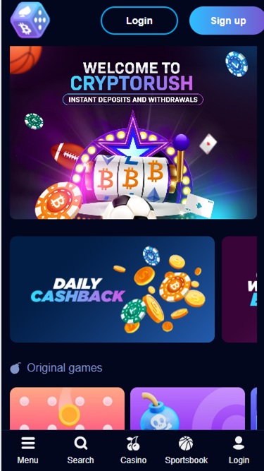 新しいアカウントの作成にはほんの少しの時間がかかります。2 つの簡単な手順を完了するだけで、CryptoRush ロビーに飛び込んで、これからレビューする豊富なゲーム ライブラリを探索できるようになります。