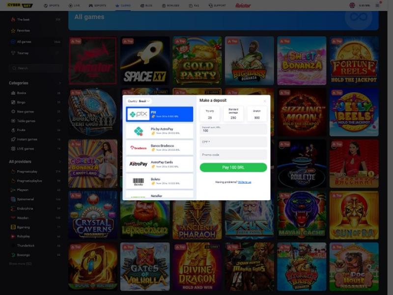 ゲームサプライヤーには、 Pragmatic Play 、Playson、Endorphina、Spinomenal などの有名企業があり、さまざまなカテゴリー (書籍、ビンゴ、新作ゲーム、テーブルゲーム、フルーツ、インスタントゲーム、ライブゲーム) のゲームを提供しています。