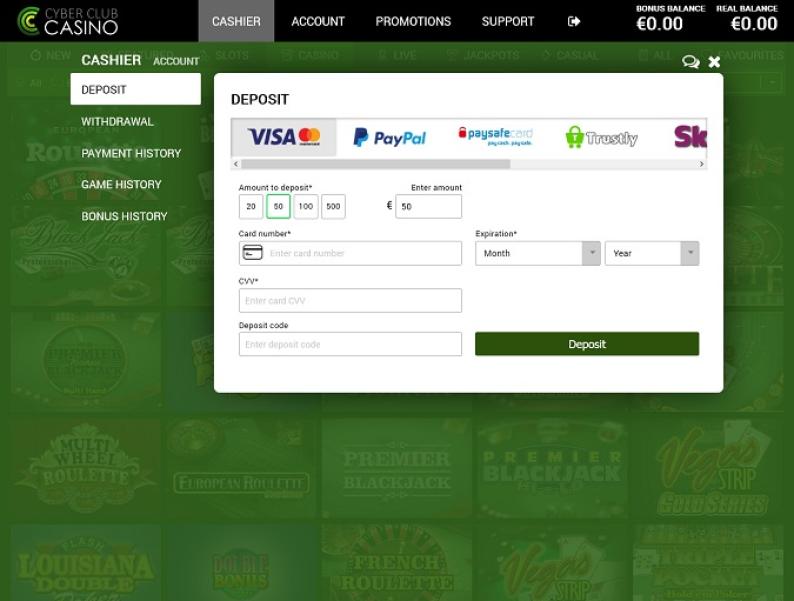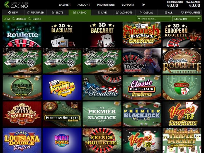 サイバークラブカジノには、Net Entertainment、NextGen、Amaya、BetSoftといった有名デベロッパーのゲームをはじめ、数多くのスロットマシンが揃っています。また、Net Ent社によるプログレッシブジャックポットも提供しており、「Mega Fortune」、「Arabian Nights」、「Hall of Gods」といったゲームでは高額賞金を獲得できます。