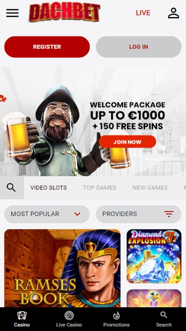 Dachbetは、AndroidまたはiOS搭載のモバイル端末、そしてPCなど、あらゆるデバイスのブラウザからご利用いただけます。このウェブサイトは、ゲームへのアクセスに選択したデバイスに関わらず、最高のプレイ体験を提供できるよう最適化されています。さあ、早速チェックしてみましょう!