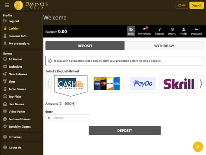 以下は、DaVinci's Gold Casino で現在提供されているプロモーションのリストです。