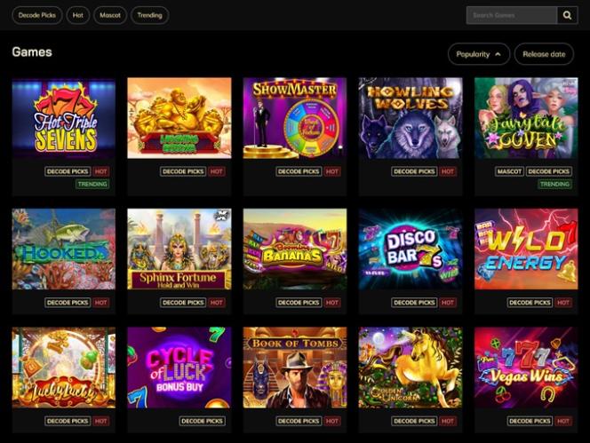 Decode Casino 同様にホームです 123以下にリストされているその他のゲーム: