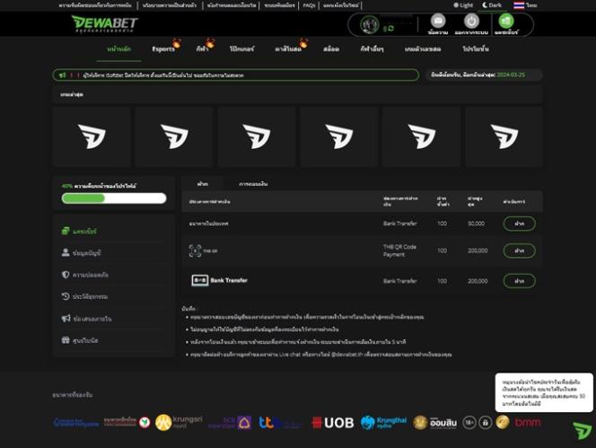 Dewabetのウェブサイトでは、入出金に利用できる銀行が限られているため、銀行システムには厳しい制限が設けられています。出金方法自体を考慮すると、出金には少なくとも数日かかります。