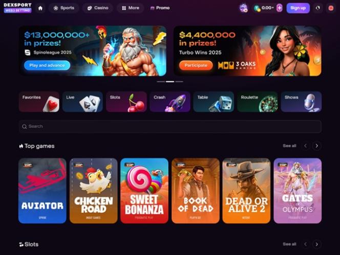 Dexsportのグラフィックソリューションと、鮮やかなネオンカラーのイラストが醸し出す雰囲気には本当に感動しました。本当に美しいオンラインギャンブルサイトで、その機能を試すのは本当に楽しかったです。すべてが整理されていて、サイトナビゲーションも非常にスムーズです。