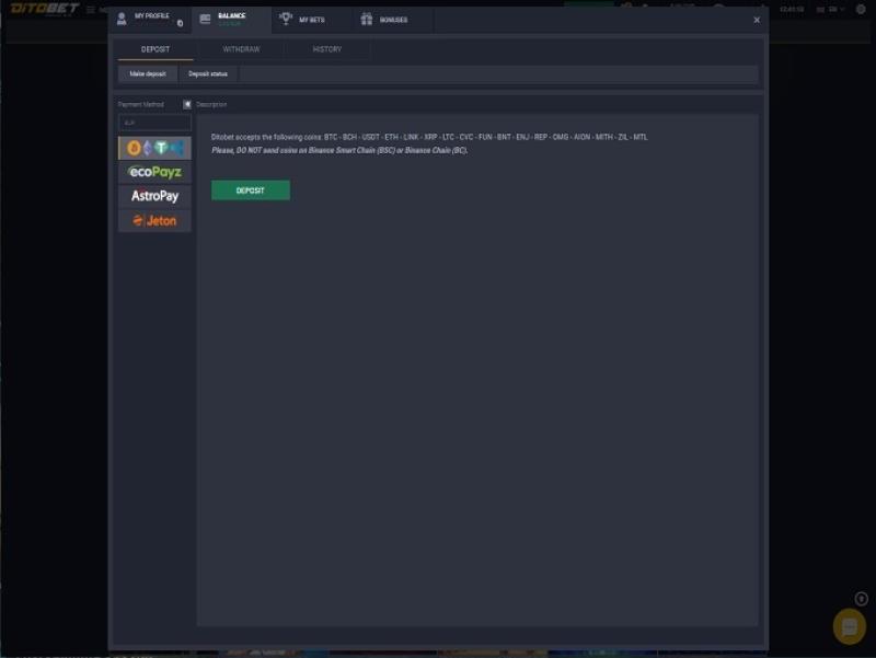 Ditobet での登録プロセスはまったく問題なく、提供された電子メール アドレスの確認と 1 分もかからずに、利用可能なすべてのコンテンツと機能にアクセスできます。