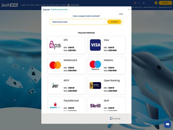 - DolfWin Casino は独自の裁量で各アカウントの入金限度額を定義する権利を留保します。