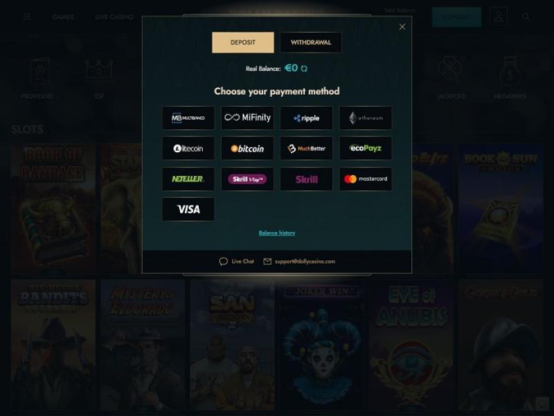 - Dolly カジノは、プレイヤーが要求したものとは異なる支払方法を使用して支払リクエストを処理する場合があります。