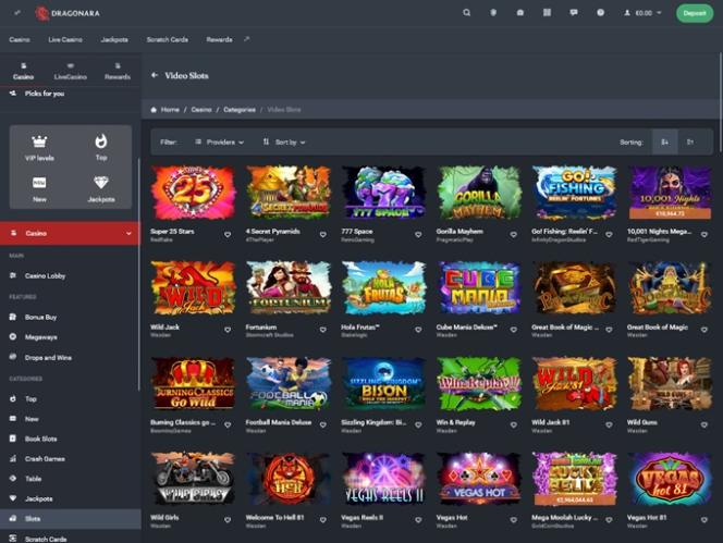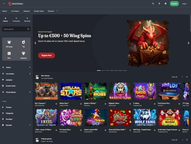Dragonara Casinoは Microgaming, 1x2gaming, ELK Studios, Evolution Gaming, iSoftBet, Novomatic, playson, Quickspin, Relax Gaming, Endorphina, Wazdan, Betgames, Stakelogic, Pragmatic Play, Felt Gaming, GAMING1, Red Tiger Gaming, Spinomenal, Red Rake Gaming, Skillzzgaming, Fantasma Games, SYNOT Games, Kalamba, Revolver Gaming, Skywind, Triple Edge Studios, Northern Lights Gaming, Stormcraft Studios, Switch Studios, Electric Elephant Games, Pocket Games Soft, All41 Studios, Gameburger Studios, Neon Valley Studios, Golden Rock Studios, Swintt, SpinPlay Games, GONG Gaming, Buck Stakes Entertainment, Games Global, Amusnet Interactive, Wizard Games, 2by2 Gaming, Blueprint Gaming, CT Interactive, Greentube, Intouch Games, Merkur Gaming, Pariplay, Push Gaming, Tom Horn Gaming, Reel Time Gaming, Authentic Gaming, BF Games, Foxium, Just For The Win, Storm Gaming Technology, PearFiction Studios, Slingshot Studios, Fortune Factory Studios, 4ThePlayer, Crazy Tooth Studio, High 5 Games, Alchemy Gaming, Snowborn Games, Hacksaw Gaming, Max Win Gaming, Gold Coin Studios, Half Pixel Studios, SilverBack Gaming, Eurostar Studios, Aurum Signature Studios, Lucksome Gaming, Bombay Live and Kironを採用しており、ゲームはウェブベースのプラットフォームを通じて提供されています。また、Dragonaraにはモバイルサイトもあり、スマートフォンやタブレットからプレイできます。