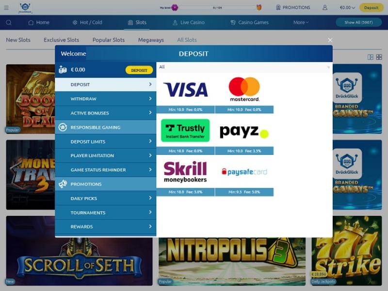 DrueckGlueck Casinoは、ドイツの賭博市場にサービスを提供するオンライン賭博サイトであり、シュレースヴィヒ=ホルシュタイン州で最初に認可されたサイトの1つです。2015年に設立され、Cognita Technologies Ltdが所有・運営するこのカジノは、訪問者に大きな期待を与える膨大なゲームライブラリを備えてオープンしました。