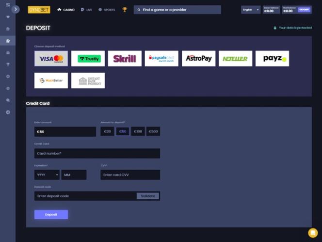 ブランド名が示すように、Dynobetには独立したスポーツブックも用意されており、プレイヤーは数十種類のスポーツで数百ものスポーツベッティングオプションをお楽しみいただけます。また、このスポーツブックではライブベッティングも提供しているため、いつでも参加して、進行中のスポーツの試合に賭けることができます。