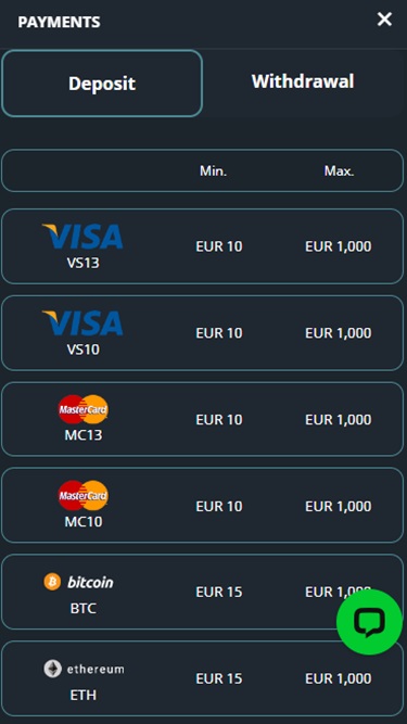 このブランドのもう一つの大きな特徴は、プレイヤーが従来型と最新型の両方の銀行決済方法を利用できることです。クレジットカードやデビットカードをご利用になりたい方も問題なくご利用いただけます。また、様々な暗号通貨を使って入出金することもでき、より安全で迅速な取引が可能です。