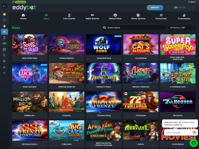 幅広いカジノゲームを提供するオンラインカジノをお探しのプレイヤーなら、EddyBet Casinoの豊富なゲームラインナップにきっとご満足いただけるでしょう。オンラインスロット、ライブディーラー、テーブルゲーム、ビンゴなど、個性豊かなゲームが揃っており、刺激的なギャンブル体験をお楽しみいただけます。