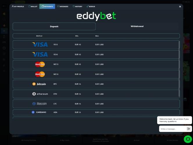 プレイヤーがロイヤルティプログラムを待つ間、EddyBetカジノは、プレイヤーの皆様が飽きずにプレイできるよう、様々なプロモーションやボーナスを含む、大変お得なプロモーションをご用意しました。アカウントを作成したら、入金額に応じたウェルカムボーナスをご利用ください。初回プレイをスタイリッシュにスタートできる、入金ボーナスと同額のプロモーションです。