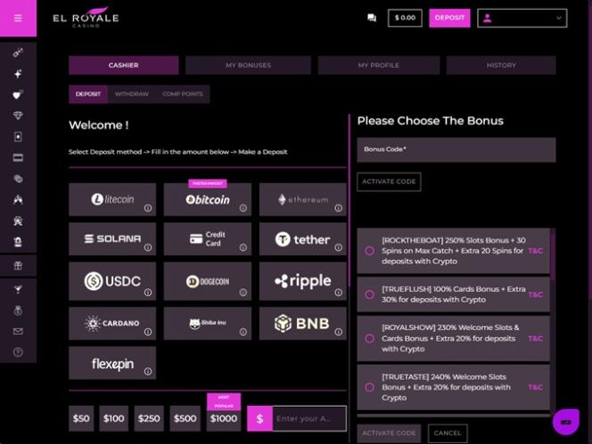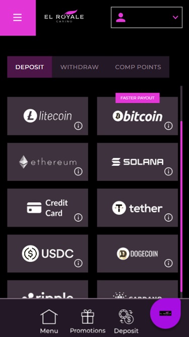 El Royale CasinoはRTGを採用しており、長年旧来のカジノで提供されていたダウンロード形式ではなく、ウェブベースのプラットフォームでゲームをお楽しみいただけます。インターフェースは使いやすく、モバイルベッティングにも対応しています。