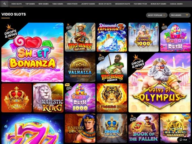 すべてのゲーム カテゴリとサブカテゴリにすばやく移動できるように、カジノのホームページの上部には水平メニューが用意されています。このメニューでは、請求できるプロモーションやボーナス専用の別のページなど、利用可能なすべてのエンターテイメント オプションにすばやくアクセスできます。