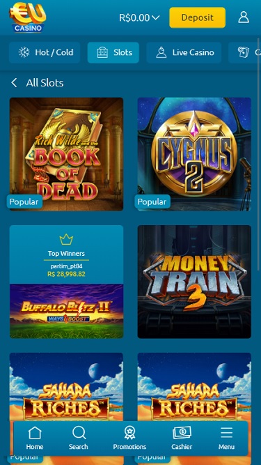 EUカジノは Microgaming, Net Entertainment, Playtech, 1x2gaming, Barcrest, Big Time Gaming, ELK Studios, Evolution Gaming, EYECON, Ezugi, Habanero Systems, iSoftBet, lightningboxgames, Oryx, Play'n GO, Quickspin, Rabcat, Relax Gaming, Thunderkick, Yggdrasil, Wazdan, Realistic Games, Booming Games, Stakelogic, Pragmatic Play, Nolimit City, Red Tiger Gaming, IGT, Red Rake Gaming, Skillzzgaming, SYNOT Games, Kalamba, Triple Edge Studios, Northern Lights Gaming, All41 Studios, Gameburger Studios, Pulse 8 Studios, Neon Valley Studios, Spearhead Studios, SpinPlay Games, GONG Gaming, Lady Luck Games, Buck Stakes Entertainment, Games Global, Amusnet Interactive, 2by2 Gaming, Blueprint Gaming, Merkur Gaming, NextGen, Push Gaming, Inspired Gaming, Cayetano, Genii, SG Interactive, Gamomat, Ganapati, Iron Dog Studio, Old Skool Studios, Foxium, Just For The Win, PearFiction Studios, Slingshot Studios, Golden Hero, Fortune Factory Studios, Green Jade Games, 4ThePlayer, AvatarUX, Crazy Tooth Studio, High 5 Games, Alchemy Gaming, Snowborn Games, Hacksaw Gaming, Max Win Gaming, Gold Coin Studios, Half Pixel Studios, Peter And Sons, Eurostar Studios, Aurum Signature Studios and Armadillo Studiosを採用しており、ゲームはウェブベースのプラットフォームを通じて提供されています。現在、モバイルサイトがないため、少し残念です。