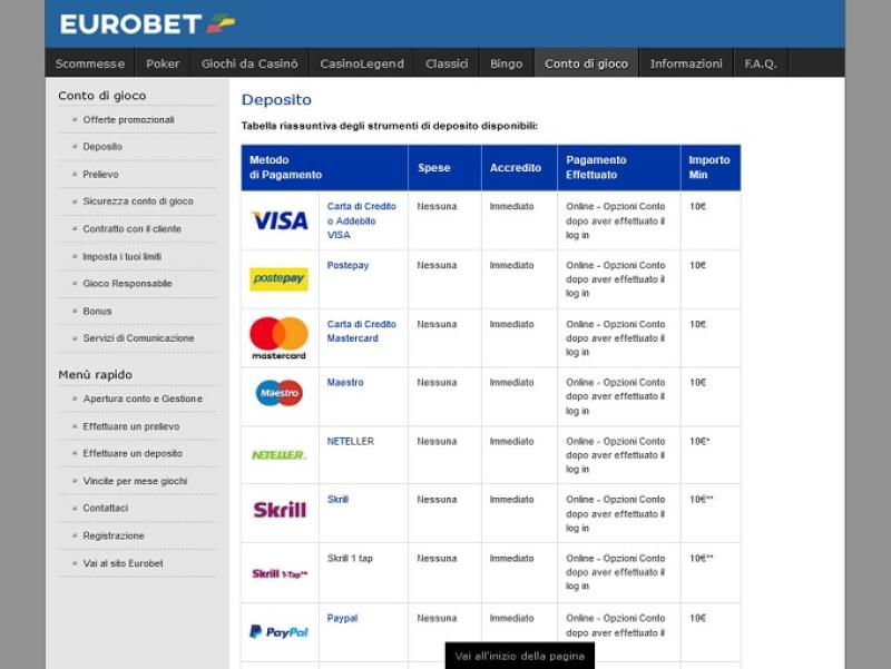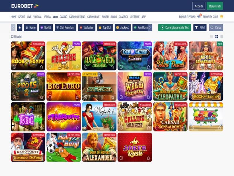 Eurobet.itは、小売とオンラインの両方の分野にまたがるイタリアの大手ベッティング会社です。2006年に設立され、現在では約900の小売店舗を擁しています。イタリアのオンライン市場の最近の自由化に伴い、Eurobetはサービスをオンライン化し、スポーツベッティング、カジノゲーム、ポーカーを顧客に提供しています。カジノ情報