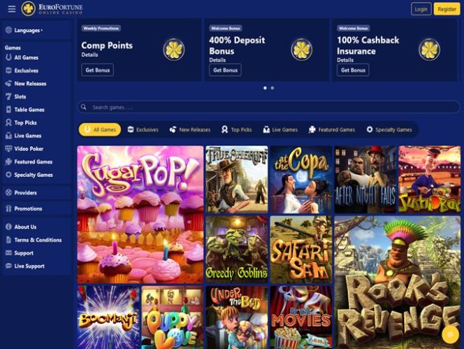 EuroFortune Casino は Net Entertainment, BetSoft, iSoftBet, playson, Rival, Vivo Gaming, Arrows Edge, Wizard Games, Pariplay and Sandstormによって運営されており、そのゲームは Web ブラウザからプレイできる Web ベースのプラットフォームを通じてアクセスできます。Caribbean Stud Poker