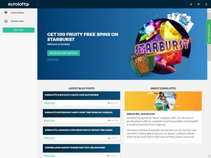 EuroLotto Casinoは、2011年にEuroSlots Limitedによって設立されたオンラインベッティングサイトです。宝くじ、ビンゴ、キノなどのサービスに特化していますが、カジノゲームも多数提供しています。豊富なゲームライブラリと迅速なペイアウトの提供で実績があり、EuroLottoはプレイするのに最適な場所です。