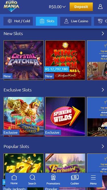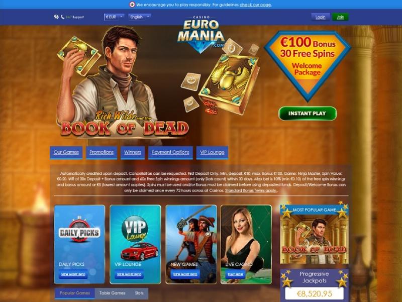 EuroManiaでは数百種類のスロットをご用意しており、世界トップクラスの開発元によるクラシックスロットからビデオスロットまで、幅広いゲームを提供しています。また、数百万ドル規模のプログレッシブジャックポットも用意されており、Mega Moolah、Major Millionsなどの高額賞金も獲得可能です。