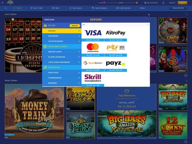 EuroMania Casinoの利用規約をよく確認したところ、プレイヤーに対して不公平または搾取的な点は見当たりません。EuroMania Casinoのバンキングシステムは、多少遅いものの、まずまずの出来です。カジノは、電信送金、EntroPay、Maestro、MasterCard、Skrill、Neteller、Paysafecard、PostePay、UseMyBank、Visa、NeoSurf、SOFORT、Moneta.ru、ecoPayz、Trustly、GiroPay、Simplerなどによる入出金に対応しています。ただし、賞金の出金には48時間の保留期間があり、その期間終了後は2~7営業日かかる場合があります。また、賞金の出金限度額は月10,000ユーロですが、これがプログレッシブジャックポットにも適用されるかどうかは不明です。