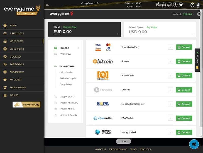 Everygame Classic は、米国のプレイヤーを歓迎する暗号通貨対応のゲーム サイトです。