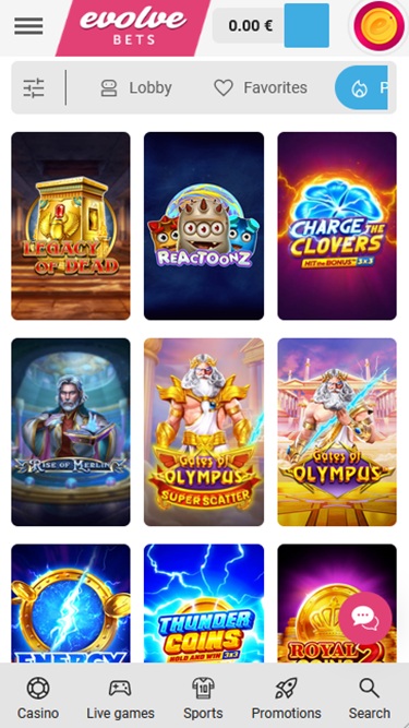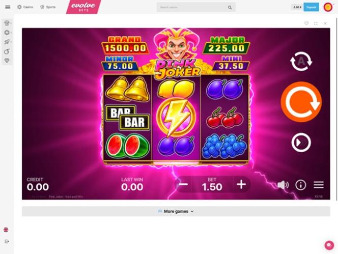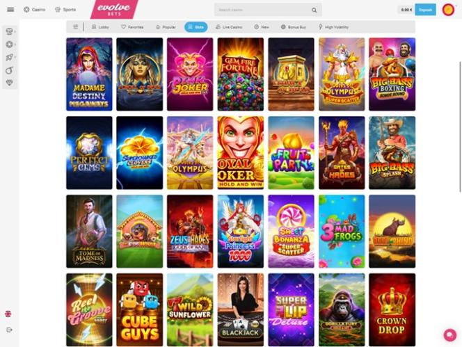 Evolve Casinoは Microgaming, Net Entertainment, BetSoft, 1x2gaming, Big Time Gaming, ELK Studios, Evolution Gaming, Ezugi, Habanero Systems, iSoftBet, Novomatic, Oryx, Play'n GO, Quickspin, Relax Gaming, Thunderkick, Vivo Gaming, Yggdrasil, Endorphina, Wazdan, GameArt, Booming Games, PlayPearls, Pragmatic Play, Nolimit City, Felt Gaming, Red Tiger Gaming, Booongo, Spinomenal, Felix Gaming, Fugaso, Fantasma Games, Kalamba, Revolver Gaming, Spinmatic, Spadegaming, Northern Lights Gaming, Fazi, Evoplay, Stormcraft Studios, Switch Studios, Pocket Games Soft, Triple PG, Bulletproof Games, All41 Studios, Gluck Games, Pulse 8 Studios, Neon Valley Studios, Golden Rock Studios, Swintt, Woohoo Games, SpinPlay Games, HungryBear Gaming, Qora Games, SmartSoft Gaming, GONG Gaming, On Air Entertainment, Buck Stakes Entertainment, Caleta Gaming, Games Global, Reevo, Amusnet Interactive, Wizard Games, Blueprint Gaming, Greentube, Pariplay, Push Gaming, Tom Horn Gaming, Gamomat, Mr Slotty, Reel Time Gaming, BF Games, betiXon, Bally Wulff, Iron Dog Studio, Old Skool Studios, Foxium, Just For The Win, Reflex Gaming, PearFiction Studios, Wild Streak Gaming, Slingshot Studios, Fortune Factory Studios, AvatarUX, Gamevy, Crazy Tooth Studio, ReelPlay, SlotVision, Alchemy Gaming, Snowborn Games, Boomerang Studios, Hacksaw Gaming, Max Win Gaming, Gold Coin Studios, Bang Bang Games, Half Pixel Studios, SilverBack Gaming, Peter And Sons, Aurum Signature Studios, FastSpin, Lucksome Gaming, Area Vegas, 3 Oaks Gaming, Wishbone Games, Spribe, Circular Arrow, Print Studios, HammerTime Games, INO Games, Nailed It! Games, Neko Games and Oros Gamingを採用しており、カジノのゲームはブラウザから起動するウェブベースのプラットフォームで提供されています。ソフトウェアをダウンロードする必要はありません。サイトは魅力的で操作も簡単で、スマートフォンやタブレットからもアクセスできます。Blackjack