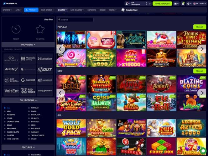 Fairpari Casino には、最も有名な iGaming スタジオが提供する非常に印象的なゲーム ライブラリが付属しています。