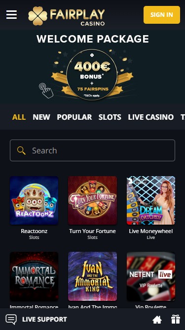 Fairplayでは、900種類以上のゲームがプレイできる、多種多様なスロットマシンをご用意しています。ORYX、Wazdan、Tom Horn、Microgaming、NetEntなどのゲームを取り揃えているので、きっとお気に入りのゲームが見つかるはずです。モバイルスロットにも対応しており、高額賞金を獲得できるプログレッシブジャックポットもご用意しています。