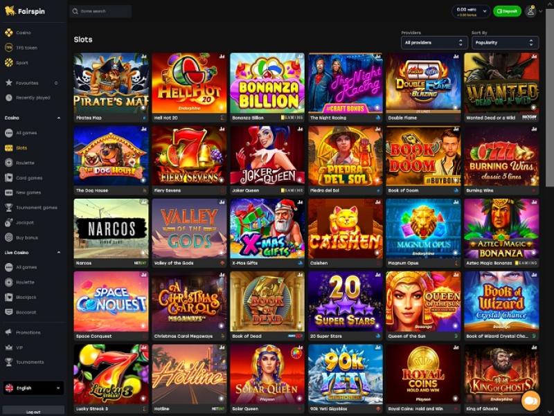 Fairspin Casinoには、何時間もプレイヤーを楽しませてくれるスロットセクションがあります。多くのオンラインカジノプレイヤーがこのタイプのカジノゲームを最も魅力的だと感じているのには理由があります。それは、これほどの楽しさと興奮を得るために、あまり多くのゲームルールを適用する必要がないからです。