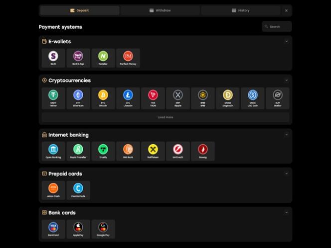 これは、すでに述べたように、 入金と出金にさまざまな暗号通貨の支払いオプションを提供するゲームサイトであり、支払いカードや電子ウォレットなどの他の信頼性が高く人気のある銀行方法も利用できます。