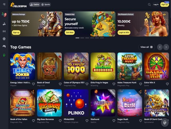 ここではいくつかのカテゴリーからいくつかのタイトルを紹介します。これにより、Felixspin で何が期待できるかがわかります。