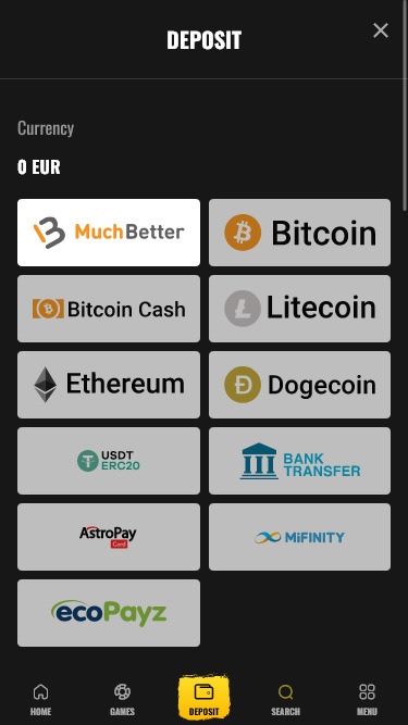 スロット、テーブルゲーム、ライブゲームなど、このカジノではあらゆる人気ジャンルを網羅しています。メインカテゴリーに加え、ドロップ&ウィンやゲームフィーチャー(メガウェイズ、スクラッチカード、BTCゲーム、クラシックスロット、ボーナスバイ)のセクションも用意されています。