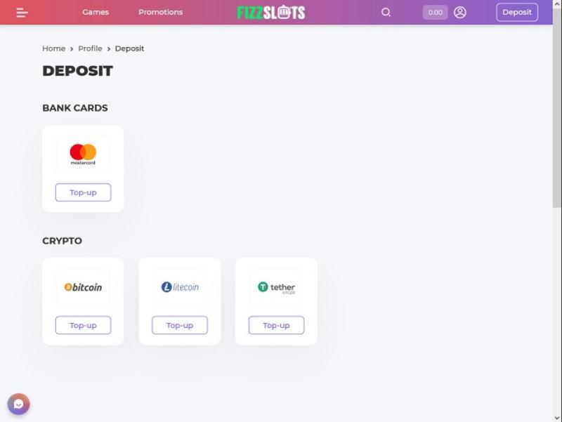 FizzSlots カジノは、決済カード、電子ウォレット、電信送金、暗号通貨バンキング オプションなど、入金と出金のためのさまざまな支払い方法をサポートしています。