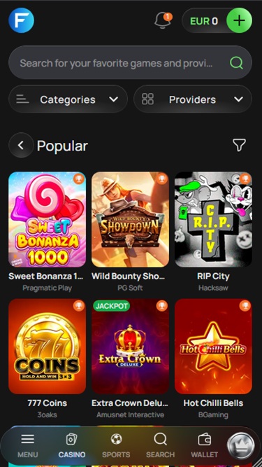 ゲームとエンターテイメントに関しては、カジノがプレイヤーに幅広いギャンブルアクティビティを提供することに多大な努力を払っていることがすぐに分かりました。オンラインスロット、ライブディーラー、クラッシュゲーム、テーブルゲームなど、数千ものゲームが用意されており、それぞれのジャンルには数多くのサブカテゴリーとバリエーションがあります。
