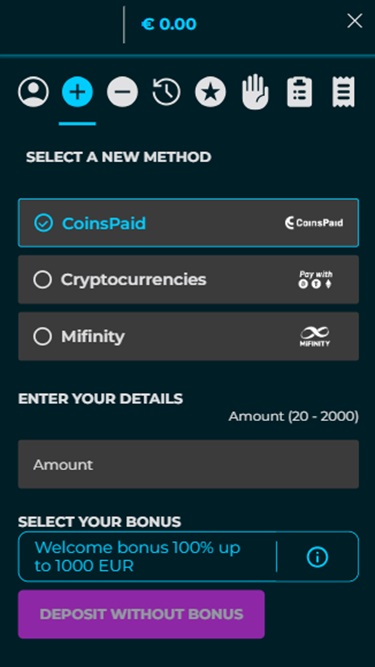 このオンラインカジノは、プレイヤーに多様な従来型決済方法と暗号通貨決済方法を提供している点で際立っています。クレジットカード、デビットカード、有名なeウォレット、銀行振込、その他の決済システムからお選びいただけます。ビットコイン、テザー、ライトコイン、イーサリアムなど、様々な法定通貨と暗号通貨に対応しています。