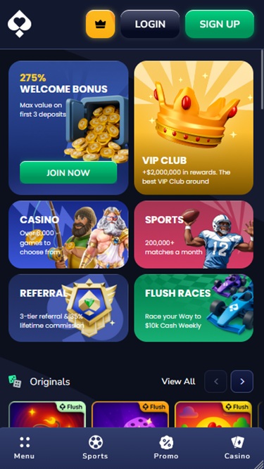 暗号カジノゲームがお好きなら、ダイス、クラッシュ、マインズ、ホイール、ハイロー、リンボ、プリンコ、キノなど、人気ゲームが満載のFlush Originalsがお気に入りのカジノカテゴリーになるかもしれません。でも、それだけではありません!他のオファーも一緒にチェックしてみましょう。