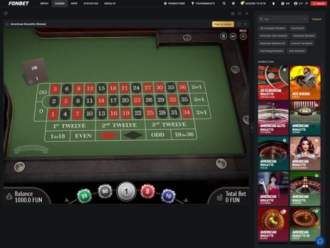 誰もが大好きな定番のカジノゲームに加え、Fonbetカジノでは、非常に詳細なスポーツブックを通して、様々なスポーツやeスポーツの試合に賭けることができます。数百ものイベントに賭けられるだけでなく、ライブベッティング機能も利用できるので、いつでも賭けに参加できます。