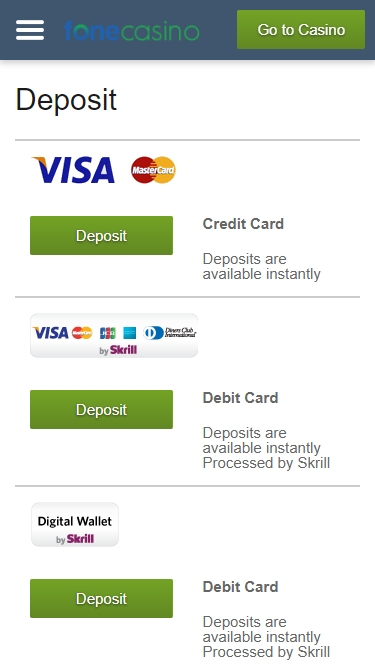 Fonecasinoは BetSoft, Rival and Saucifyを採用しており、ゲームはウェブベースのプラットフォームとダウンロード可能なソフトウェアを通じて提供されています。また、スマートフォンやタブレットでプレイしたい方のために、モバイルサイトも用意されています。