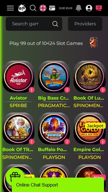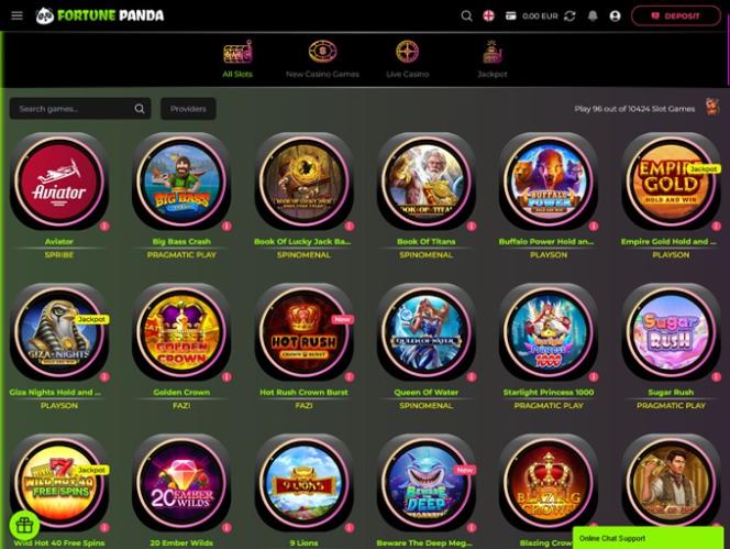 カジノプラットフォームは、愛らしいパンダのアバターがプレイヤーを温かく迎える、すっきりとしたデザインが特徴です。カジノゲームに特化しており、ユーザーフレンドリーなダッシュボードと、デスクトップとモバイルを含むあらゆるデバイスに最適化された機能豊富なインターフェースをプレイヤーに提供しています。このゲームサイトでは、お好きなゲームコンテンツを簡単に見つけることができ、ページを素早く移動できます。さあ、Fortune Pandaと一緒に、カジノのギャンブルオファーを一緒に探検しましょう!