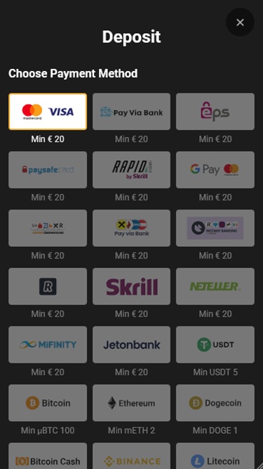 プレイヤーは、デビットカードやクレジットカード、SkrillやNetellerなどの人気の電子ウォレット、銀行振込、入金や出金を迅速かつ簡単にするその他のオンライン決済システムなど、広く使用されている決済オプションから選択できます。