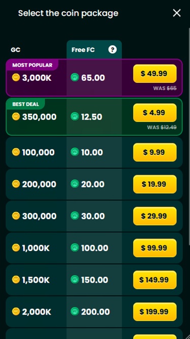 ここでは、プレイヤーは何も購入することなく、すべてのゲームとコンテンツを無料で体験できます。ゲームは、純粋なエンターテイメントとして設計されたゴールドコインモードと、最終的に実際の賞品を獲得できるフォーチュンコインモードのいずれかでプレイできます。どちらの通貨も無料で入手できます。