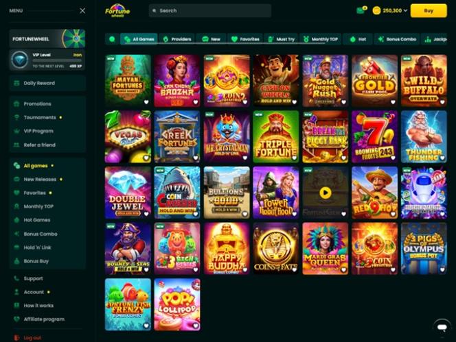 私たちと同じように、Fortune Wheelz Casinoソーシャルゲームサイトのデザイナーがウェブサイトのデザインに込めた思いを、プレイヤーの皆様にもきっと気に入っていただけると思います。このカジノは、魅力的なダークグリーンの背景と黄色の色合いを基調としたカラーパレットと、初心者でも簡単に操作できる直感的なインターフェースを完璧にバランスさせた、ミニマルなユーザーエクスペリエンスを提供することを目指しています。