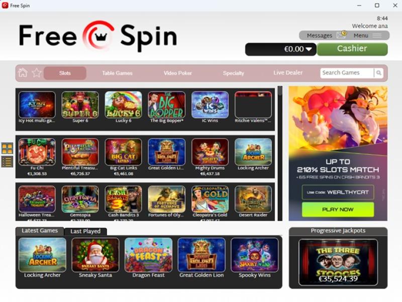 Free Spin Casinoは Real Time Gaming, Visionary iGaming and Spinlogic Gamingによって運営されており、カジノゲームはウェブベースのプラットフォームとダウンロード可能なソフトウェアを通じて提供されています。外出先でもプレイしたい方のために、モバイルサイトもご用意しています。